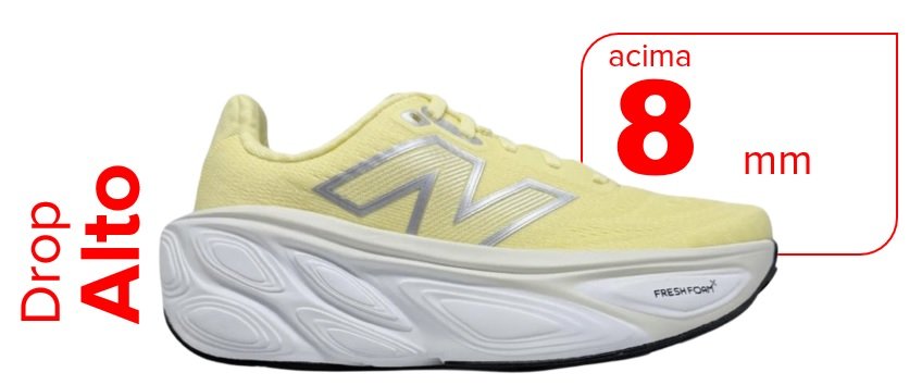 Já os com drop alto têm acima de 8 mm, possibilitando maior amortecimento e estabilidade para os corredores aterrissarem com o calcanhar. Eles também seriam os mais indicados para corridas mais longas e para pessoas com sobrepeso.