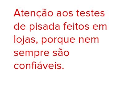 Ainda assim, o especialista reforça que, se você quiser comprar um tênis que atenda exatamente ao seu tipo de pisada, precisa buscar alguma empresa séria que faça esse tipo de teste – em geral, focada na orientação para corridas. “Eu tenho medo desses testes feitos em lojas porque, se a sua pisada for supinada e o vendedor não tiver um tênis supinado lá, pode ser que ele não passe o diagnóstico correto para que possa efetuar a venda de outro modelo. Já nas empresas que não têm vinculação a qualquer loja de calçados, pode ser que esse exame seja mais confiável”, opina.